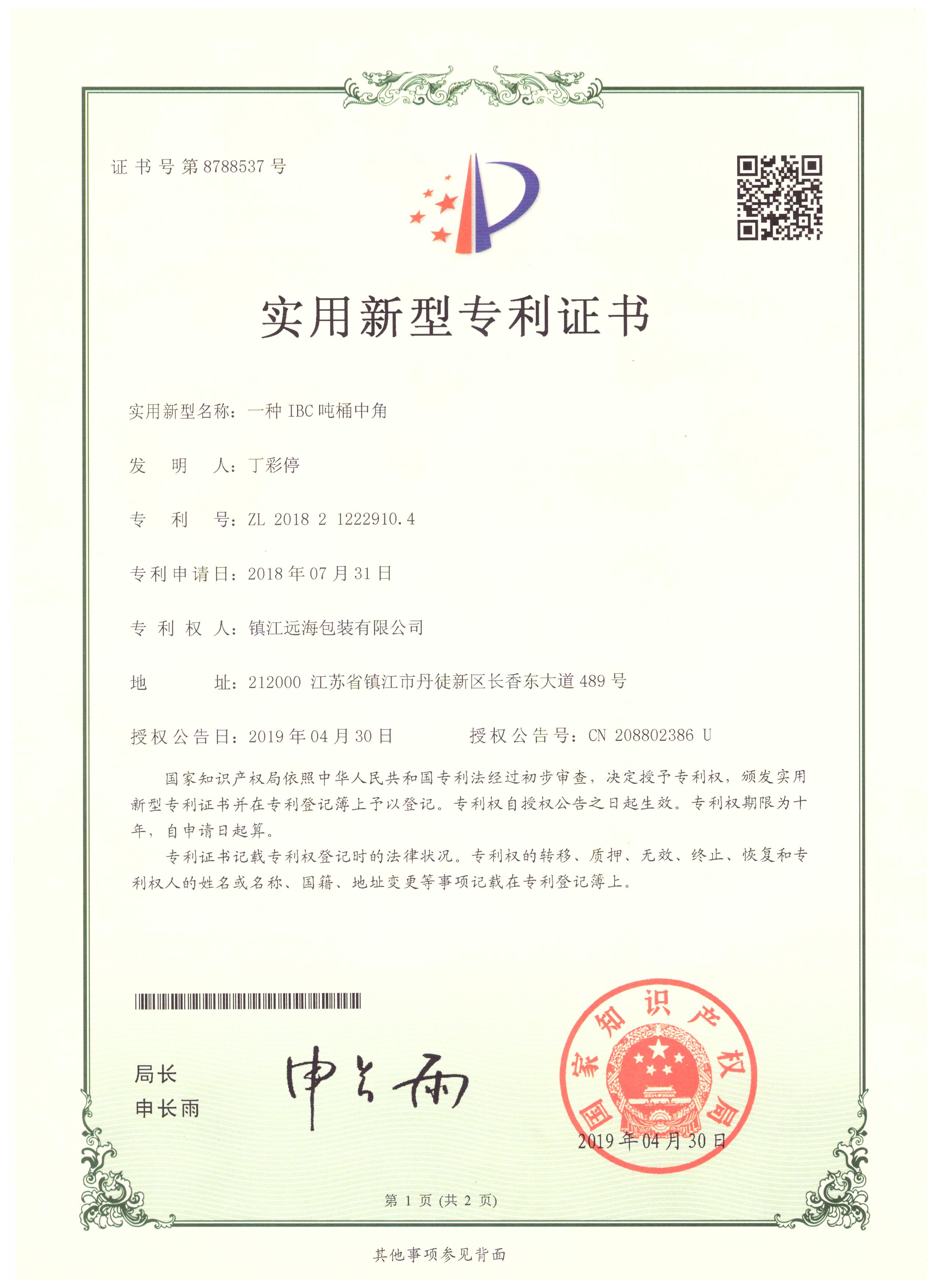 鎮江遠海包裝有限公司成立于2014年8月,是一家專注于生產IBC噸桶及零配件的企業,主要產品有各種型號的底板、橫梁、底角、標牌、鍍鋅焊管等。公司擁有相關產品的外觀型和實用型8項專利。